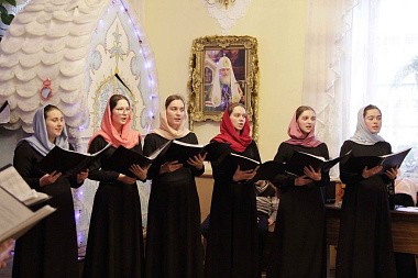 Затем для гостей и всех желающих в актовом зале Регентско-катехизаторского духовного училища при обители воспитанницами училища и учащимися монастырской воскресной школы был представлен концерт «Рождественская елка».