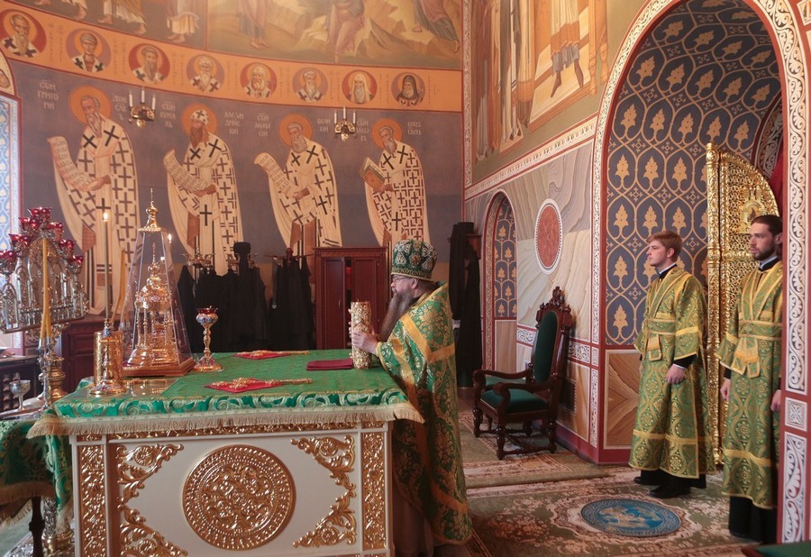 Прежде всего, я должен передать благословение Святейшего Патриарха Московского и всея Руси Кирилла матушке игумении, сестрам, паломникам, всем тем, кто пришел помолиться у цельбоносных мощей преподобного и богоносного отца нашего Стефана, Махрищского чудотворца.
