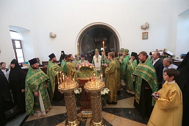 Завершил позднюю Литургию крестный ход, направившийся из Троицкого собора в храм прп. Стефана Махрищского, где был совершен торжественный молебен у святых мощей преподобного. За праздничной трапезой для гостей монастыря прозвучало музыкальное поздравление, которое подготовили сестры обители и воспитанницы детского приюта «Ковчег».