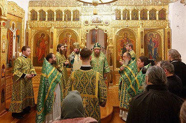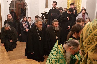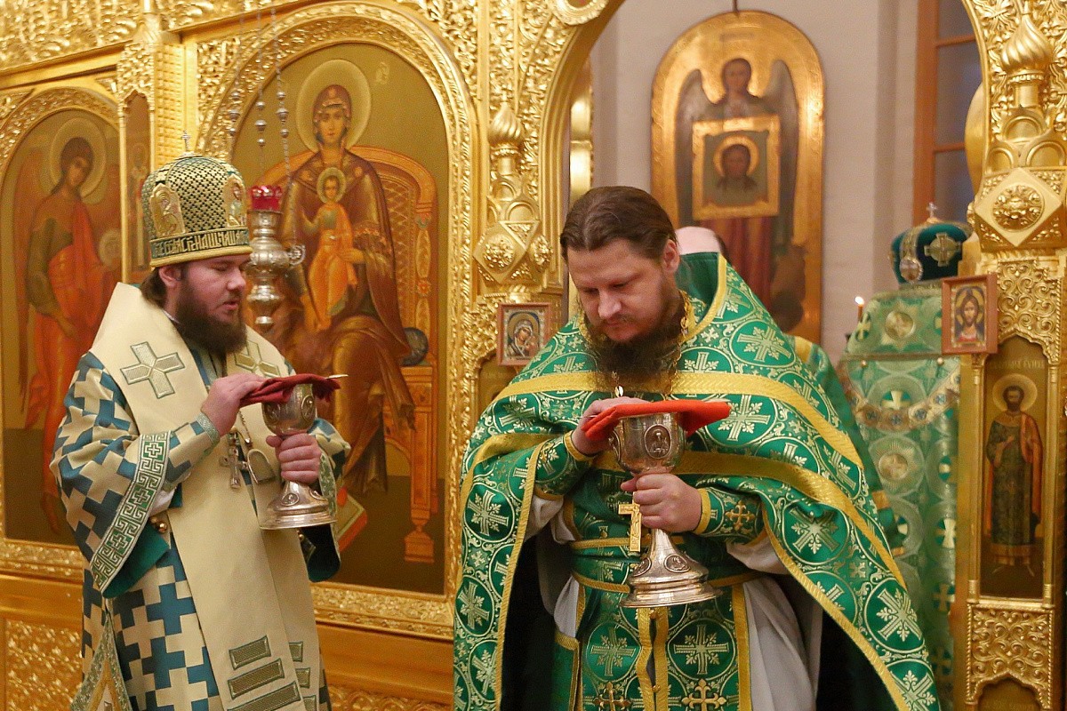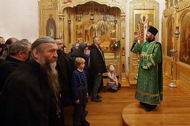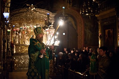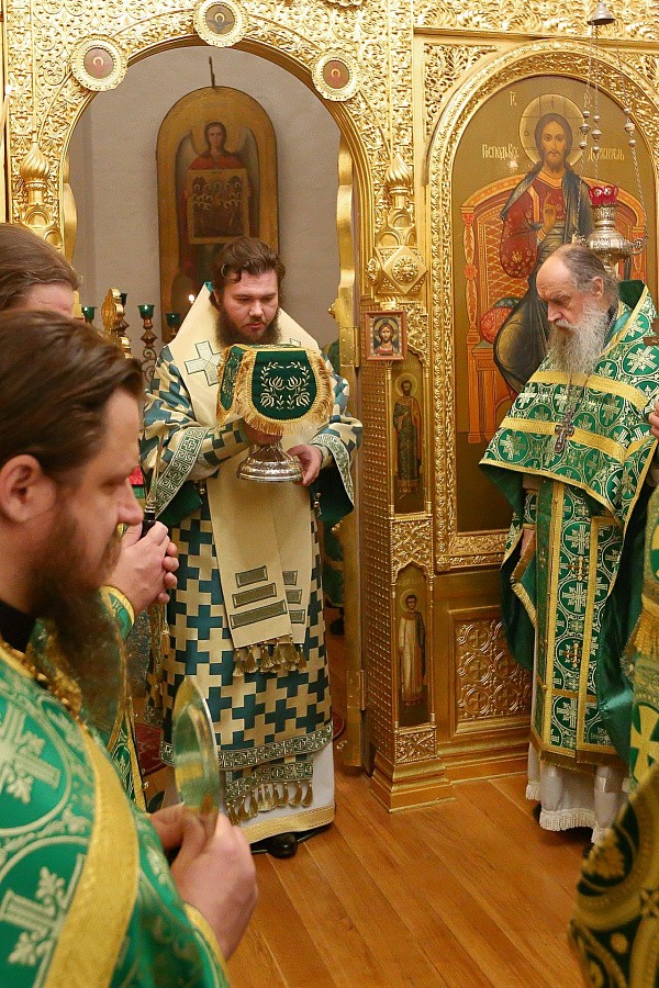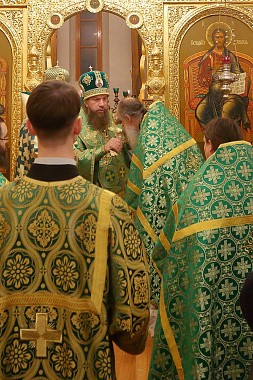 Его Высокопреосвященству сослужили епископ Уржумский и Омутнинский Фома, братия лавры в священном сане.