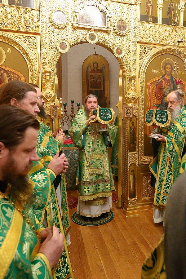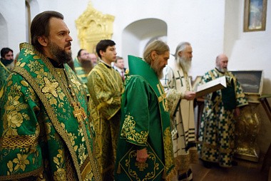 Его Высокопреосвященству сослужили председатель Синодального отдела по монастырям и монашеству, наместник Троице-Сергиевой лавры архиепископ Феогност, праздновавший в этот день 30-летие исполнения послушания наместника обители преподобного Сергия, архиепископ Верейский Амвросий, ректор Московских духовных школ, и священноиноки лавры.