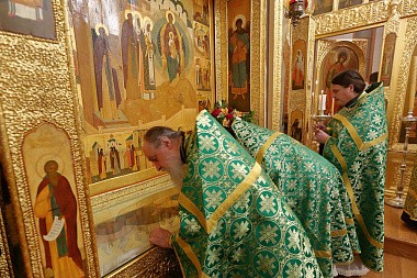 Накануне праздника в Успенском соборе Троице-Сергиевой лавры было совершено всенощное бдение.