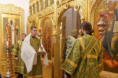 Раннюю Литургию в Никоновском приделе Троицкого собора возглавил митрополит Астраханский и Камызякский Никон, отмечавший сегодня день своего тезоименитства.