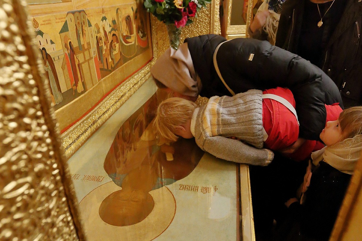 По окончании богослужения митрополит Никон совершил славление перед ракой прп. Никона Радонежского и прочитал коленопреклоненную молитву святому.