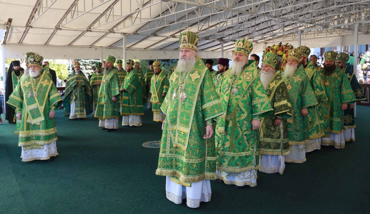 На площади Троице-Сергиевой лавры молебен в сослужении сонма архиереев возглавил управляющий делами Московской Патриархии митрополит Воскресенский Дионисий.