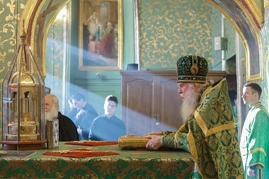 В Трапезном храме Лавры всенощное бдение совершил председатель Синодального отдела по монастырям и монашеству митрополит Каширский Феогност. Его Высокопреосвященству сослужили епископ Видновский Тихон, епископ Серпуховской Роман.