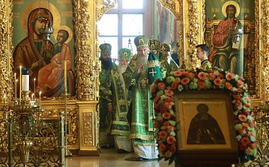 Божественную литургию в Трапезном храме совершил председатель Синодального отдела по монастырям и монашеству митрополит Каширский Феогност. Его Высокопреосвященству сослужили епископ Видновский Тихон, епископ Мытищинский Феофилакт, епископ Серпуховской Роман, епископ Наро-Фоминский Парамон.