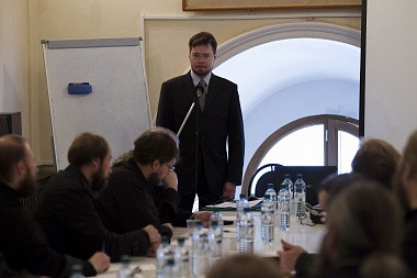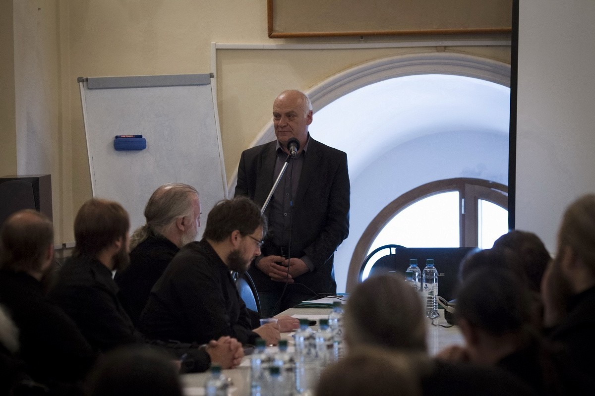 С приветственным словом к слушателям курсов обратился руководитель Центра образования духовенства г. Москвы Артемий Владимирович Пономарев, рассказавший собравшимся о целях, задачах и содержании организуемых занятий.