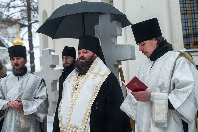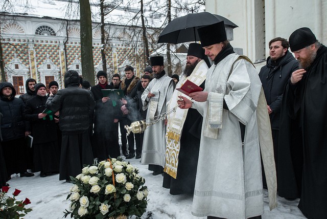 Заупокойное богослужение возглавил наместник Троице-Сергиевой Лавры епископ Сергиево-Посадский Парамон в сослужении братии монастыря в священном сане.