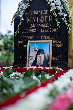 По окончании Литургии архиепископ Каширский Феогност, епископ Сергиево-Посадский Парамон и епископ Звенигородский Питирим совершили панихиду на могиле отца Матфея.