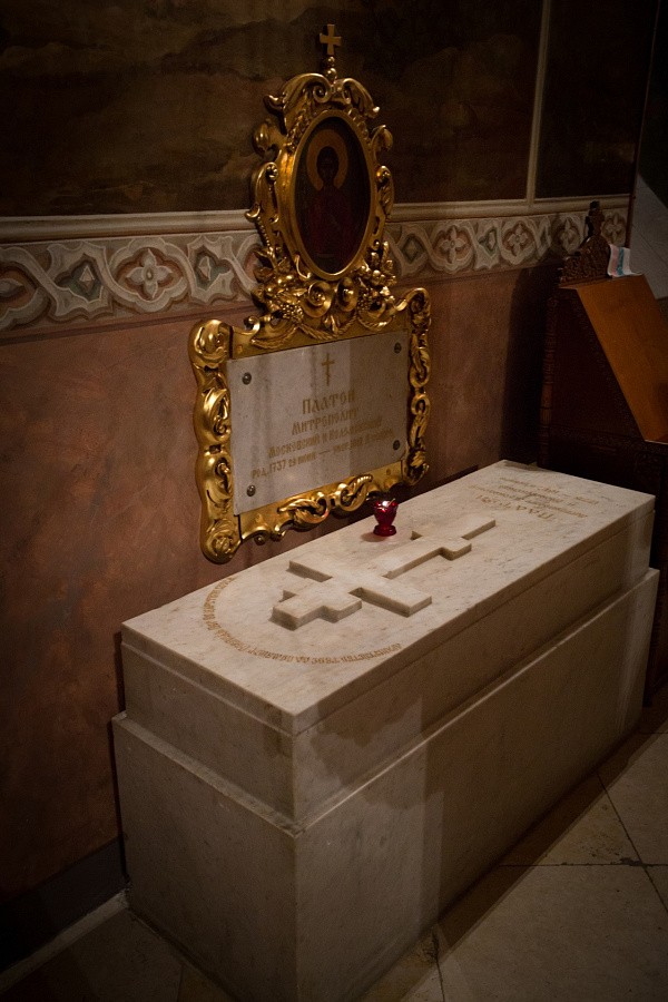 Митрополит Платон был очень почитаем в своей обители, его особенно чтили все жители округи, которые верили в то, что он помогает маленьким детям, и в одежде – в рубашке – клали их на его гробницу, и с верой, надеждой и упованием получали исцеления дети. Там хранился гроб с телом митрополита Платона, там находилась и гробница преподобного Сергия, которая сейчас хранится в Успенском соборе.
