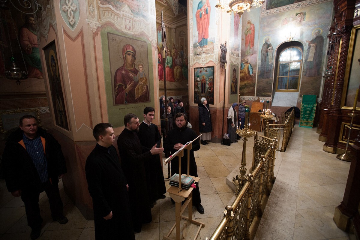 Его Высокопреподобию сослужила монастырская братия в священном сане: настоятель основанного митрополитом Платоном Спасо-Вифанского мужского монастыря иеромонах Аверкий (Лопатюк), иеромонах Агафон (Болотин) и другие.