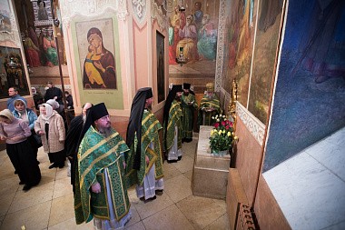 Божественную литургию в Духовском соборе обители, где находится гробница приснопоминаемого архиерея, возглавил лаврский насельник архимандрит Макарий (Веретенников).