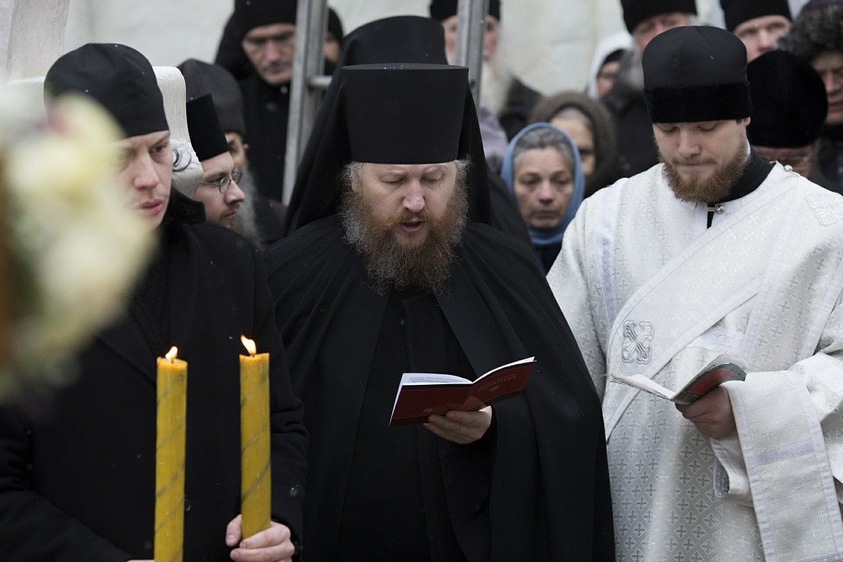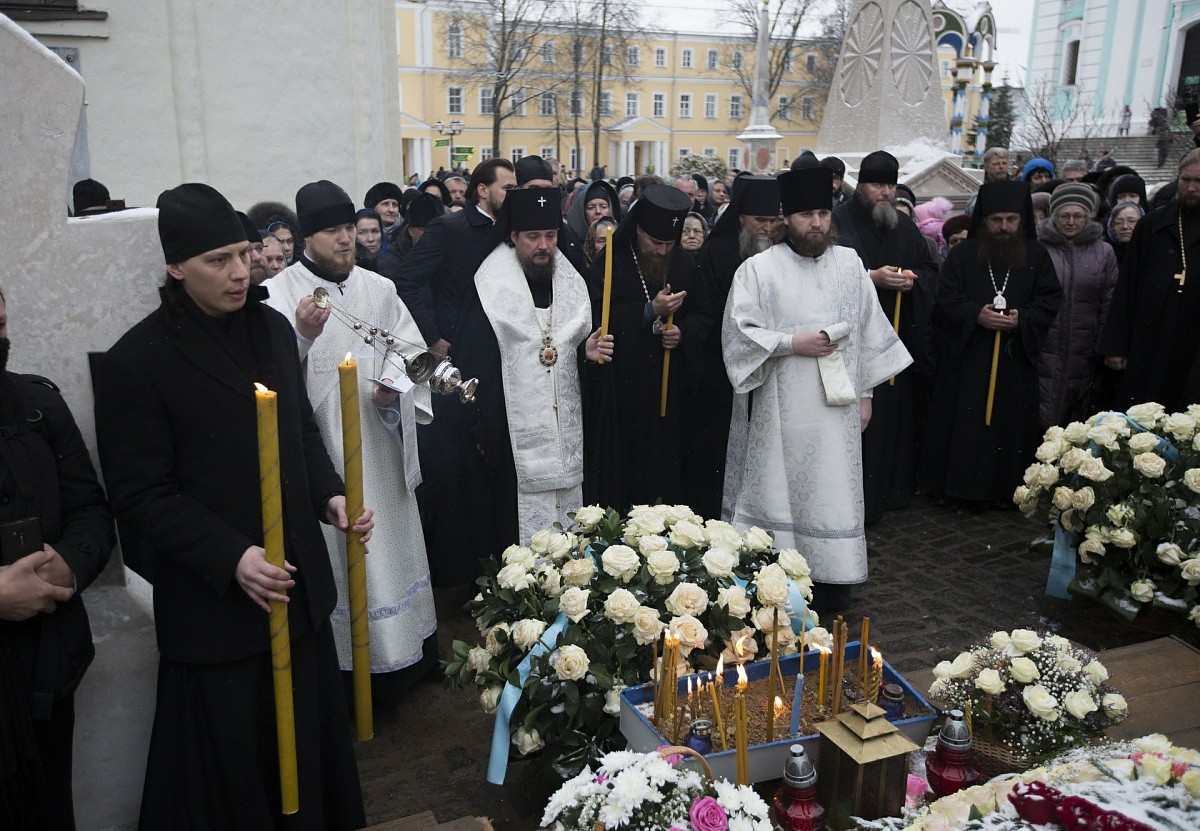 По окончании богослужения архиепископ Сергий отслужил панихиду по новопреставленному архимандриту Науму у могилы усопшего за алтарем Духовского храма Лавры.