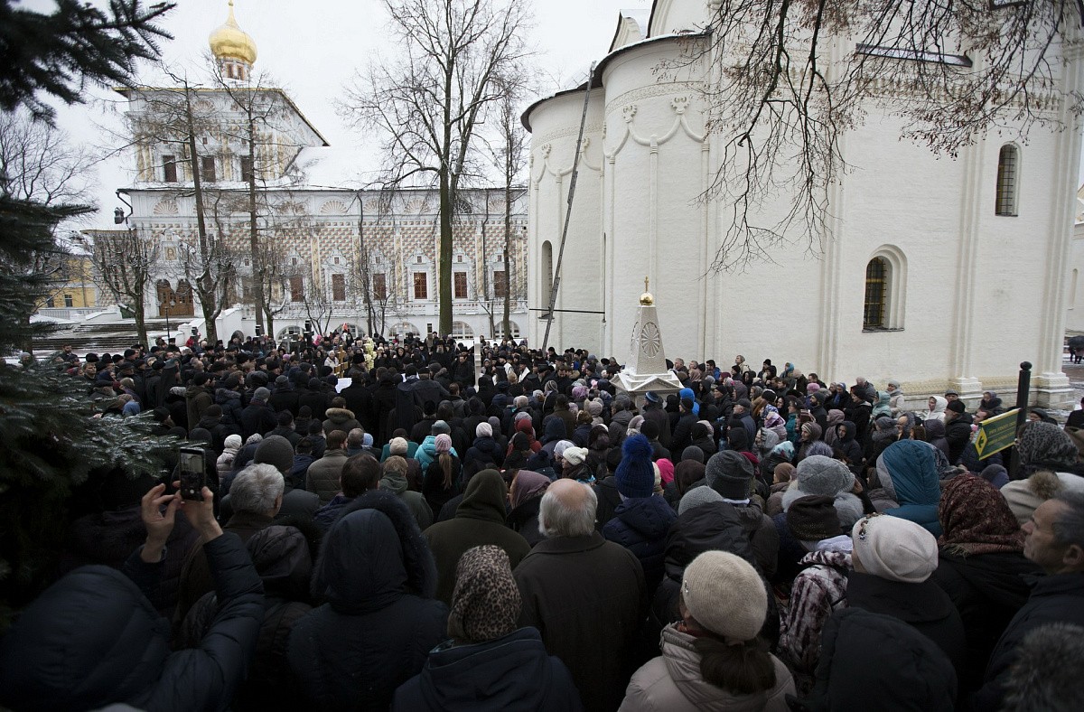 Накануне всенощное бдение в Успенском соборе обители возглавил митрополит Астраханский и Камызякский Никон в сослужении наместника Лавры архиепископа Сергиево-Посадского Феогноста.