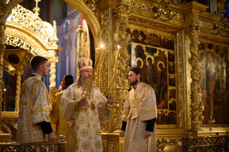 В этот день Божественную литургию в Успенском соборе монастыря возглавил наместник обители архиепископ Сергиево-Посадский Феогност.