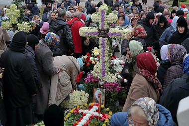 Раннюю заупокойную Литургию в Троицком соборе монастыря возглавил митрополит Астраханский и Камызякский Никон в сослужении сонма архипастырей и духовенства.