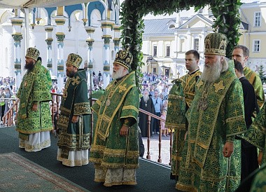 В Трапезном храме Лавры праздничное всенощное бдение совершил председатель Отдела внешних церковных связей Московского Патриархата митрополит Волоколамский Иларион. Его Высокопреосвященству сослужили архиепископ Егорьевский Матфей, епископ Наро-Фоминский Парамон, епископ Серпуховской Роман.