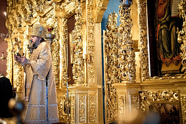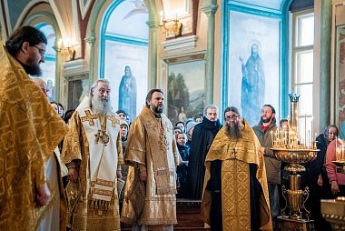 По окончании Литургии архиепископ Феогност прочитал молитву перед мощами преподобного Максима Грека. Хор исполнил тропарь, кондак и величание святому исповеднику.