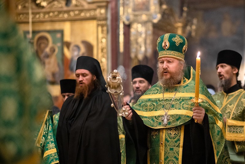 По окончании Литургии наместник Троице-Сергиевой лавры епископ Фома поздравил всех с праздником и обратился к собравшимся с архипастырским словом: