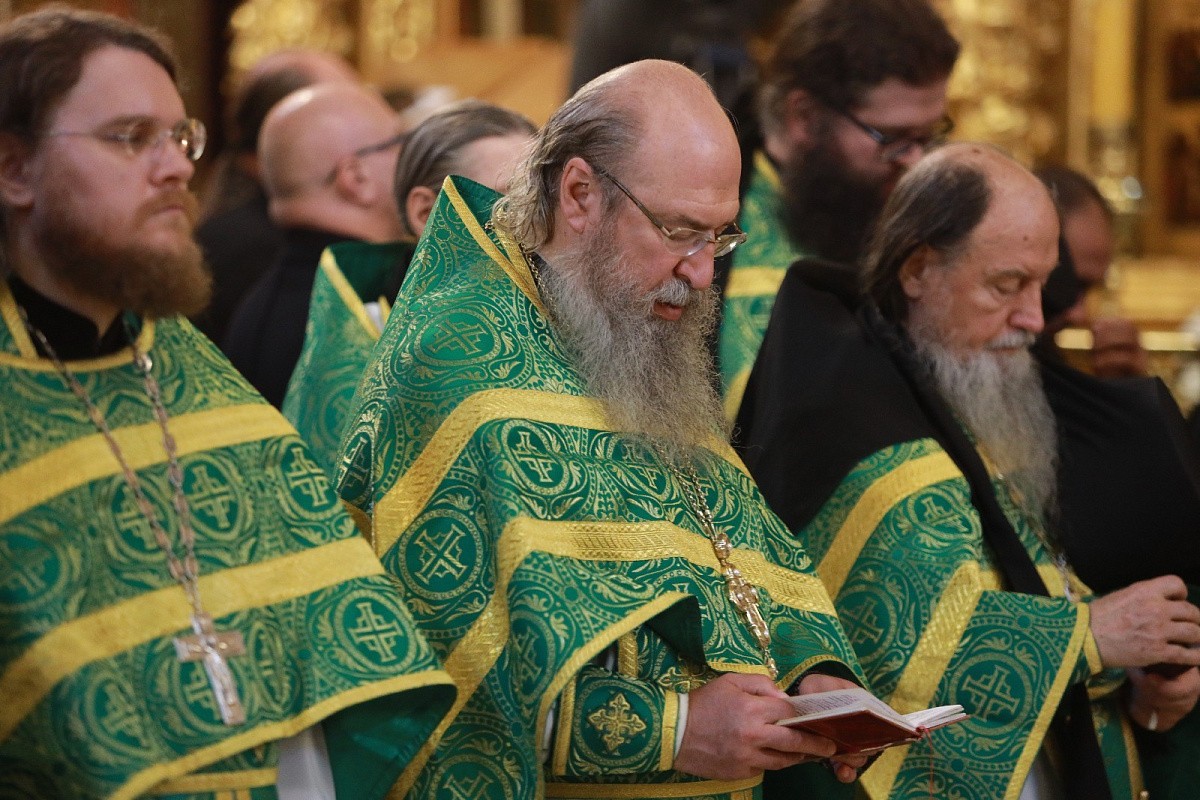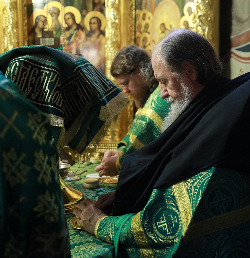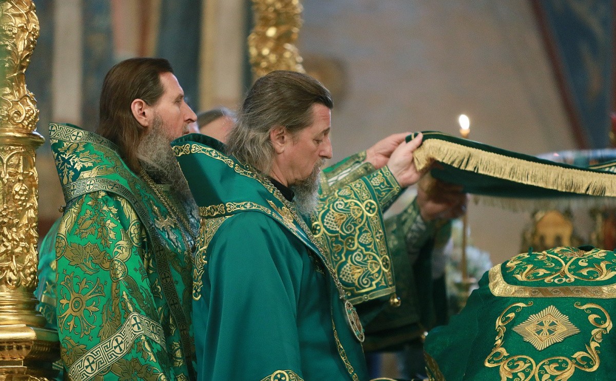 В Трапезном храме Троице-Сергиевой лавры праздничное всенощное бдение возглавил митрополит Крутицкий и Коломенский Павел.