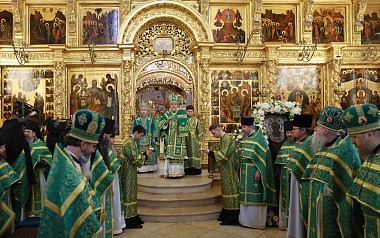 7 октября в Троицком соборе Лавры всенощное бдение в сослужении архиереев Русской Православной Церкви совершил управляющий делами Московской Патриархии, наместник Новоспасского ставропигиального монастыря митрополит Воскресенский Дионисий.