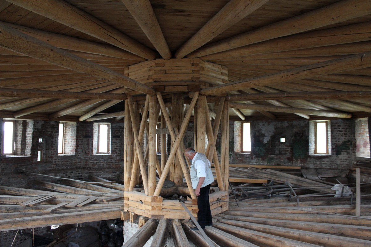 Перед началом воспроизведения исторического облика купольного покрытия Пятницкой башни было произведено ее обследование с целью определения технического состояния и несущей способности конструкций крыши башни для проведения реконструкции. Обследованию подлежали стропильные конструкции и кровля здания. Проводилось визуальное и инструментальное обследование путем детального осмотра конструкций крыши и выполнения их обмеров.