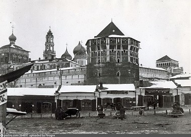 Вместо сгоревшей кровли в 1923 г. (1925 г.) по проекту архитектора Д.П. Сухова была построена шатровая кровля Пятницкой башни.