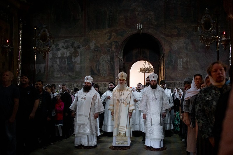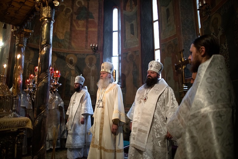 Церковные песнопения исполнил знаменный хор Лавры под управлением иеромонаха Зиновия (Бубякина).