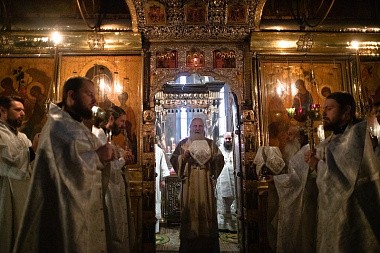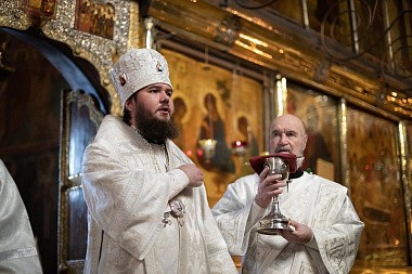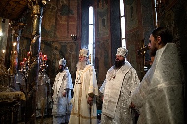 За Божественной литургией было прочитано святительское зачало из Евангелия от Матфея (Мф. 5:14–19), в котором Спаситель призывает Своих учеников к нравственному совершенству, видя которое окружающие будут прославлять Небесного Отца.