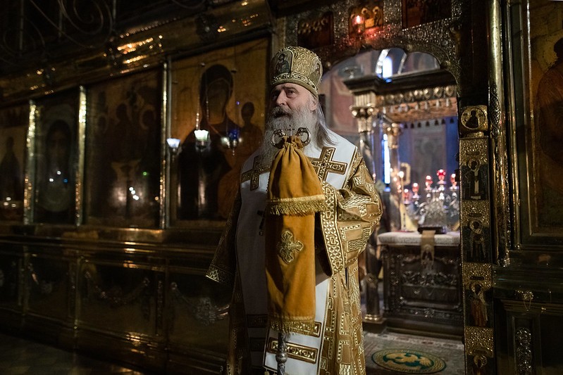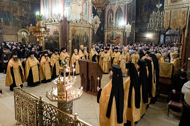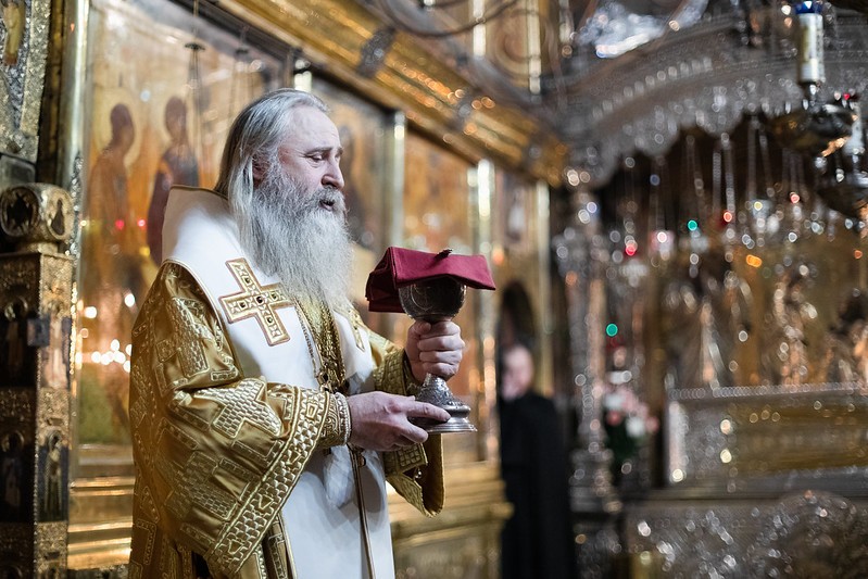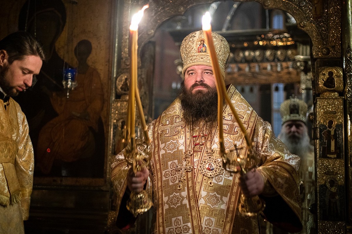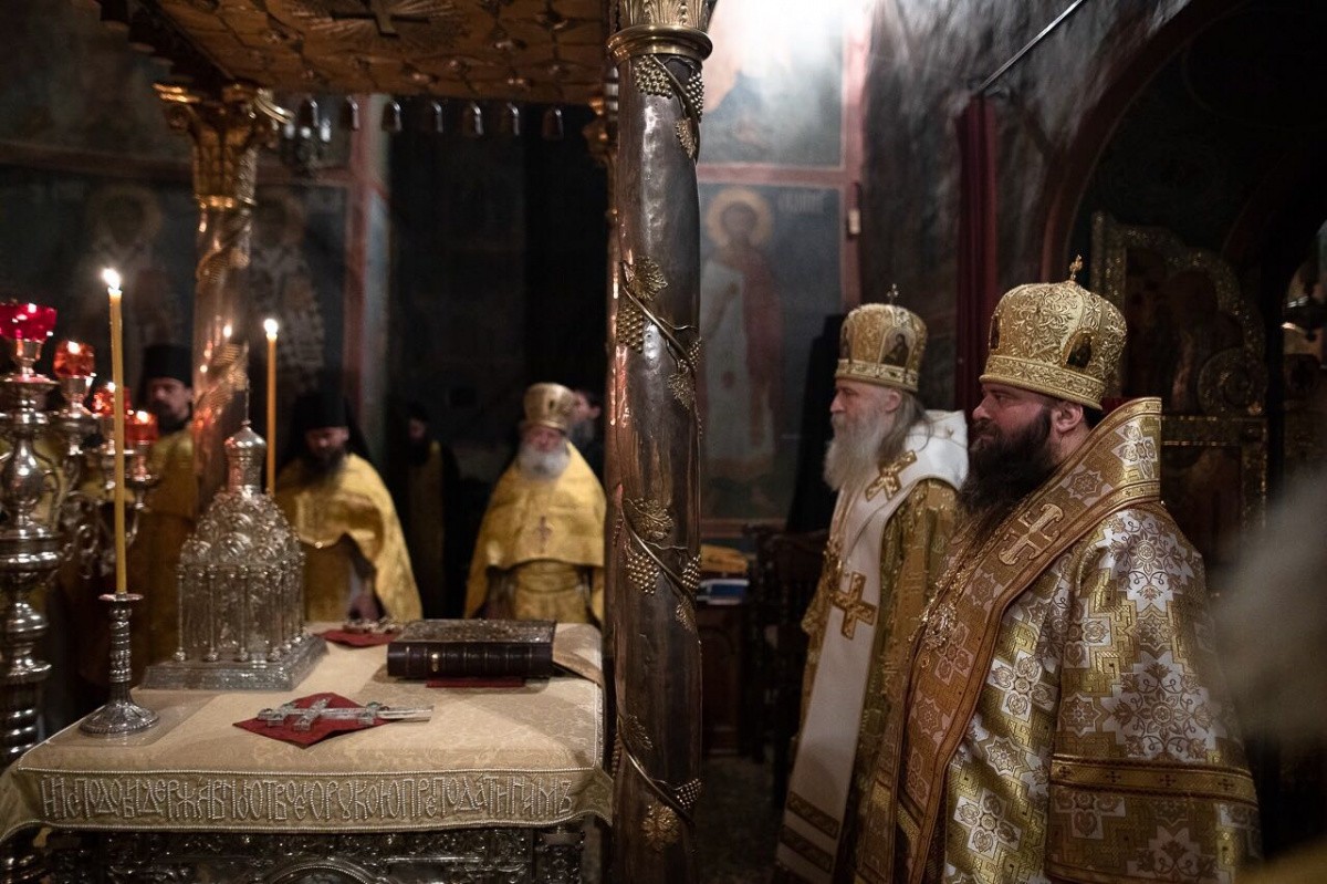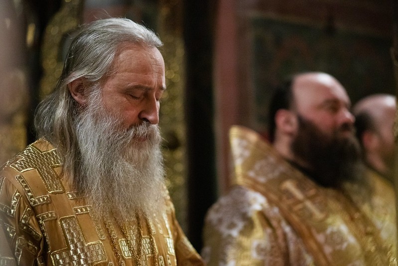 Воскресную Божественную литургию в Троицком соборе Лавры совершили председатель Синодального отдела по монастырям и монашеству архиепископ Каширский Феогност и наместник Свято-Троицкой Сергиевой лавры епископ Сергиево-Посадский Парамон.