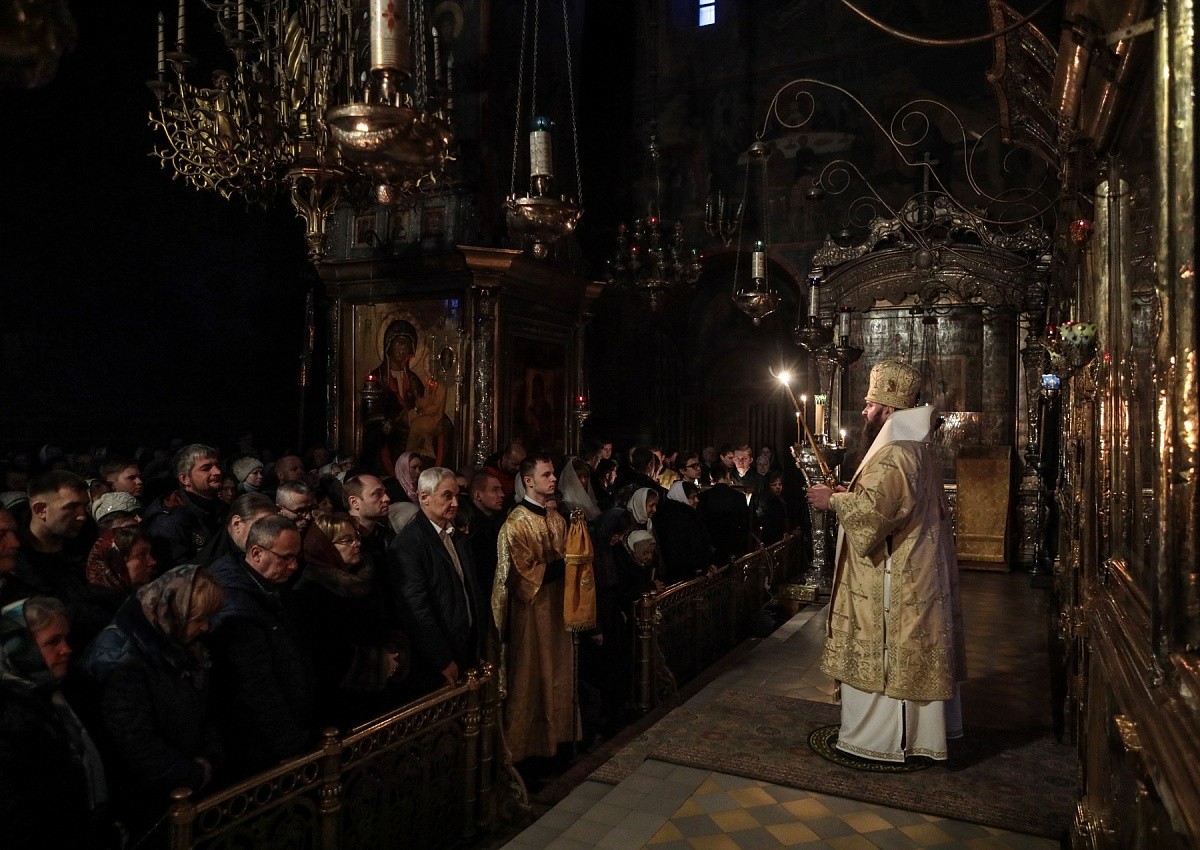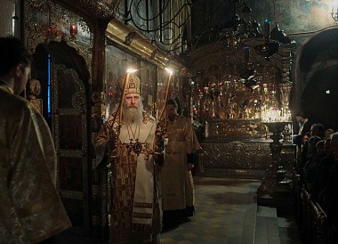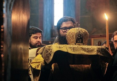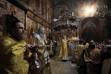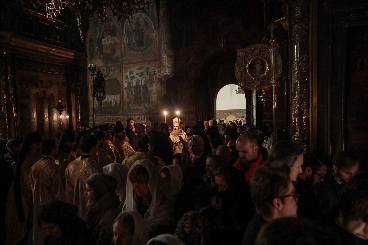 1 марта 2020 года, в Неделю сыропустную, воспоминания Адамова изгнания из Рая, Прощеное воскресенье, в Свято-Троицкой Сергиевой лавре состоялось архиерейское богослужение.