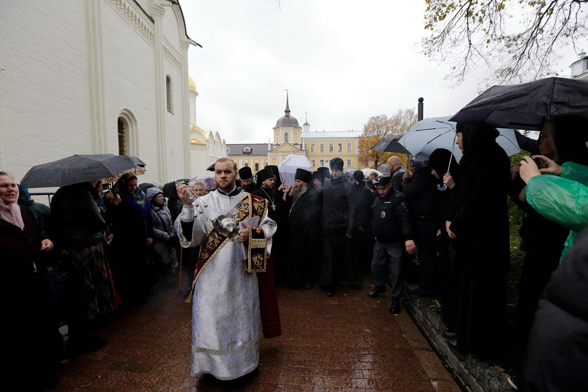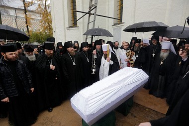 По окончании Божественной литургии заупокойное богослужение в Успенском соборе обители возглавил митрополит Истринский Арсений, викарий Святейшего Патриарха.