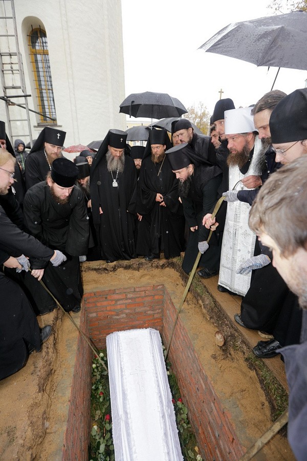 По окончании отпевания гроб с почившим отцом Наумом под звон колоколов обнесли вокруг Успенского собора.