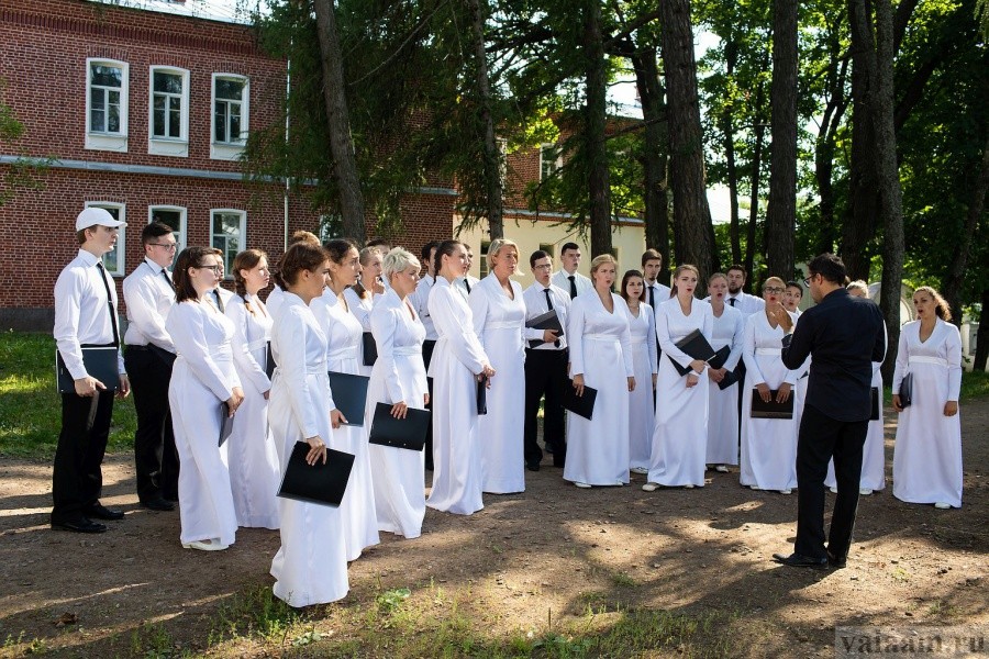 Первый день работы фестиваля начался с праздничной Божественной литургии. Клиросное пение в честь святого равноапостольного великого князя Владимира звучало одновременно в четырех храмах центральной усадьбы Валаамского Спасо-Преображенского монастыря.