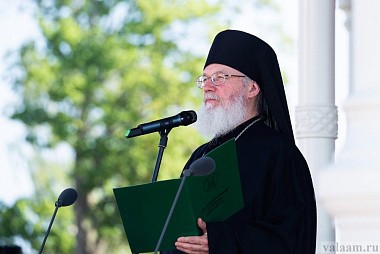 Затем игумен Валаамского монастыря епископ Троицкий Панкратий, открывая мероприятие, объявил, что главное место в четвертом сезоне Международного Валаамского фестиваля занимает тема «Подвиг новомучеников и исповедников Церкви Русской».