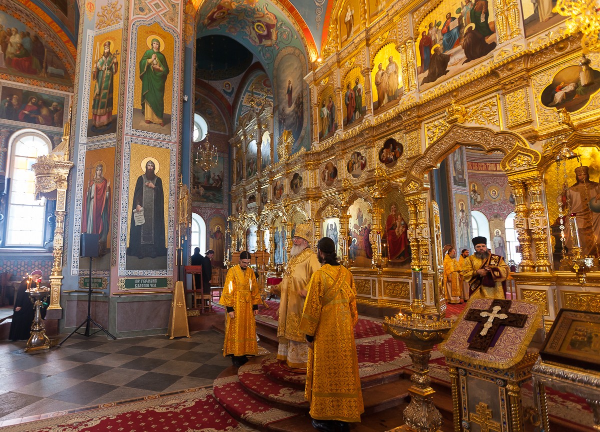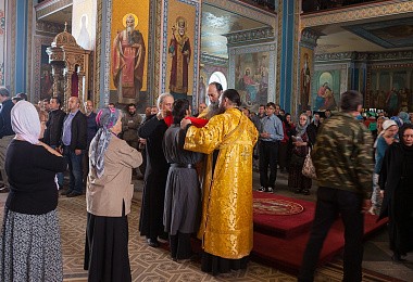 Накануне, на утрене, после великого славословия, состоялся вынос Креста и поклонение ему по чину Крестопоклонной недели.