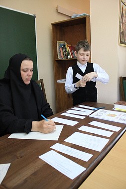Особенно прилежных учеников настоятельница монастыря и директор Воскресной школы игумения Екатерина (Чайникова) наградила грамотами и паломнической поездкой.