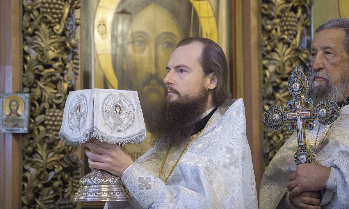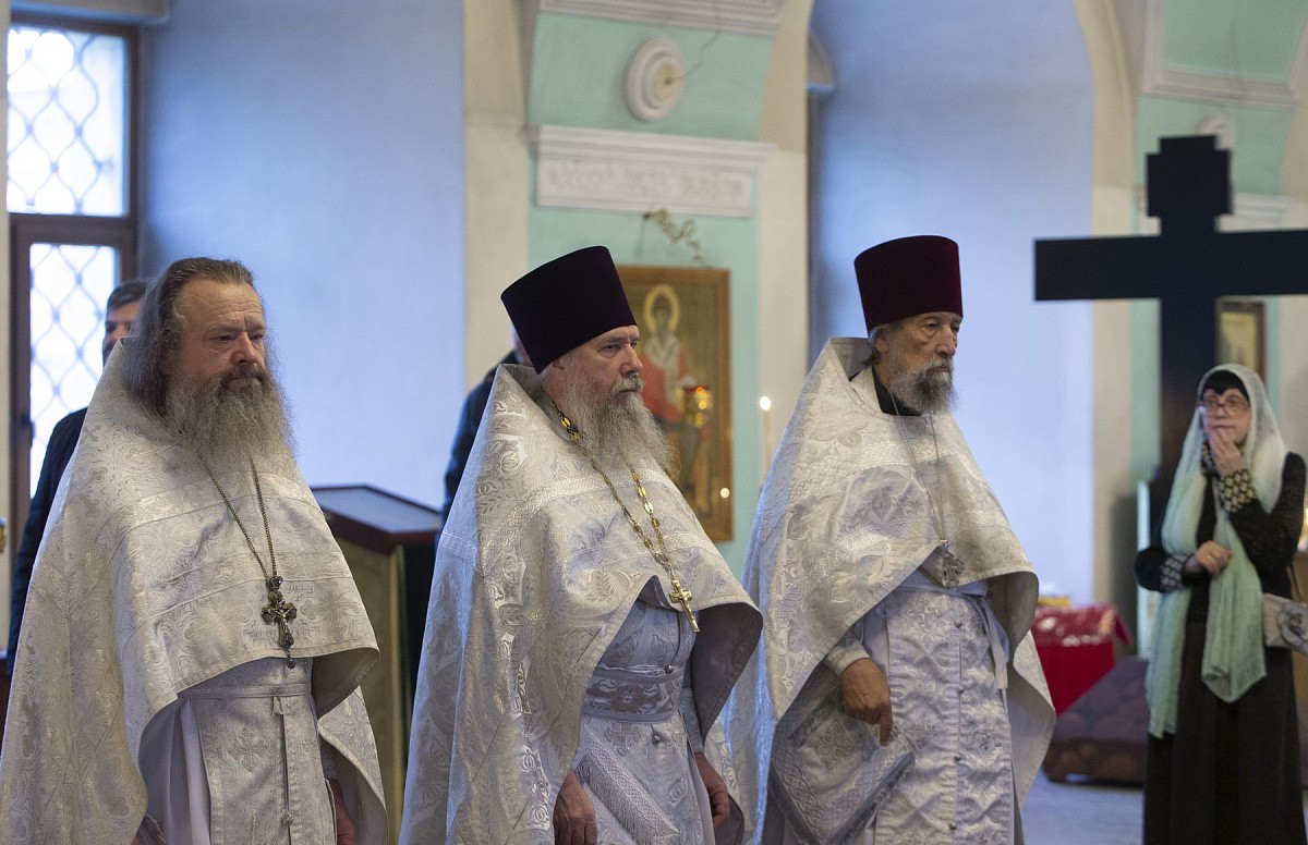 Его Высокопреосвященству сослужили: наместник Высоко-Петровского ставропигиального мужского монастыря игумен Петр (Еремеев) с братией обители в священном сане, наместник Воскресенского Ново-Иерусалимского ставропигиального мужского монастыря архимандрит Феофилакт (Безукладников), сыновья приснопоминаемого отца Глеба протоиерей Кирилл Каледа, настоятель храма новомучеников и исповедников Церкви Русской в Бутове, и протоиерей Иоанн Каледа, настоятель храма Живоначальной Троицы на Грязех у Покровских Ворот в Москве, протоиерей Александр Салтыков, настоятель храма Воскресения Христова в Кадашах, декан факультета церковных художеств Православного Свято-Тихоновского гуманитарного университета, а также духовенство г. Москвы.