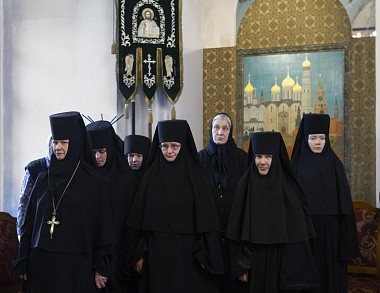 По окончании Литургии настоятельница Зачатьевского ставропигиального женского монастыря игумения Иулиания (Каледа) обратилась к собравшимся: