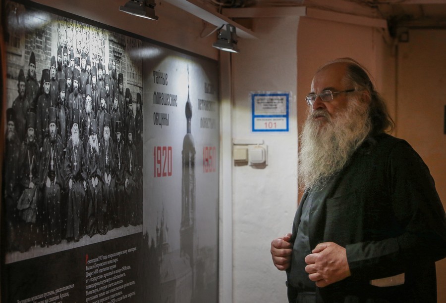 Четыре тематических стенда повествуют о внутренней духовной жизни тайных петровских общин, о принципах духовного руководства, на котором основывалось воспитание иноков; о мученическом пути наставников Высоко-Петровского монастыря и о их духовных детях – бережных хранителях памяти о своих наставниках и свидетелях об их подвиге.