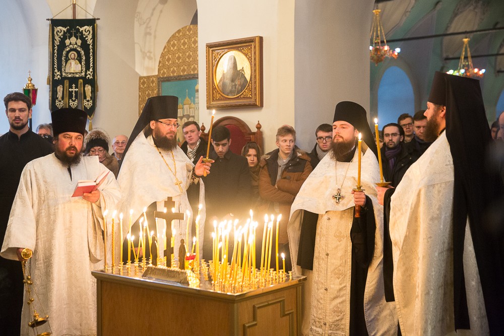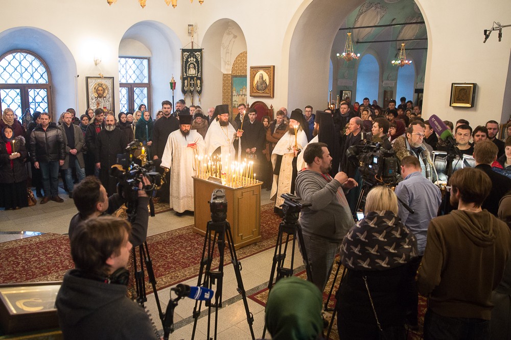 На панихиду по новопреставленному Борису Буряченко в Высоко-Петровский монастырь собрались сотни людей. Среди них – родные и близкие, его девушка, друзья, однокурсники и коллеги. Песнопения панихиды исполнил хор более чем из 30 певцов под управлением регента Высоко-Петровского монастыря Алексея Любимого.