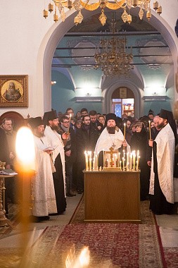 Панихиду совершил наместник монастыря игумен Петр (Еремеев) в сослужении благочинного монастыря иеромонаха Матфея (Мунтяну) и помощника благочинного иеромонаха Лаврентия (Полешкевича).