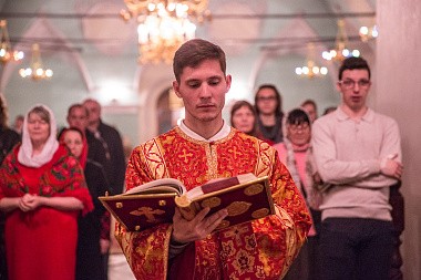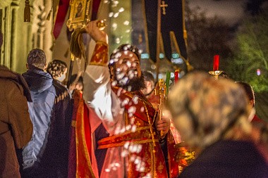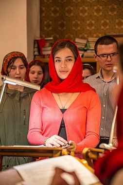 В храме молились участники молодежных объединений. К Таинству Причастия приступило большинство молящихся в эту ночь в храме.