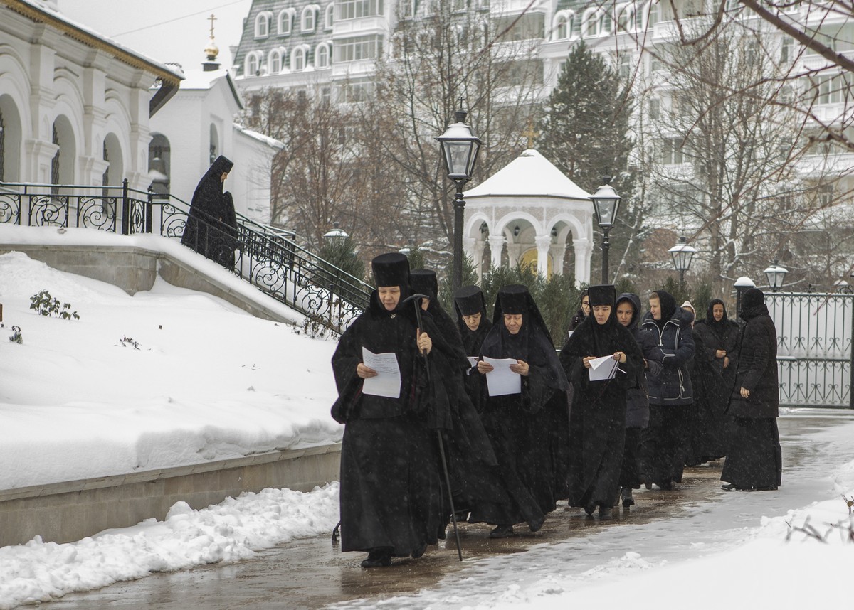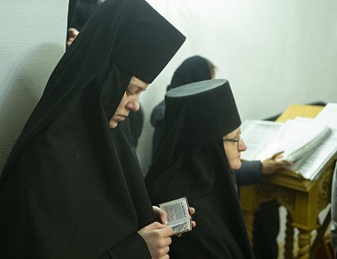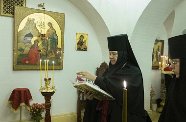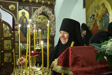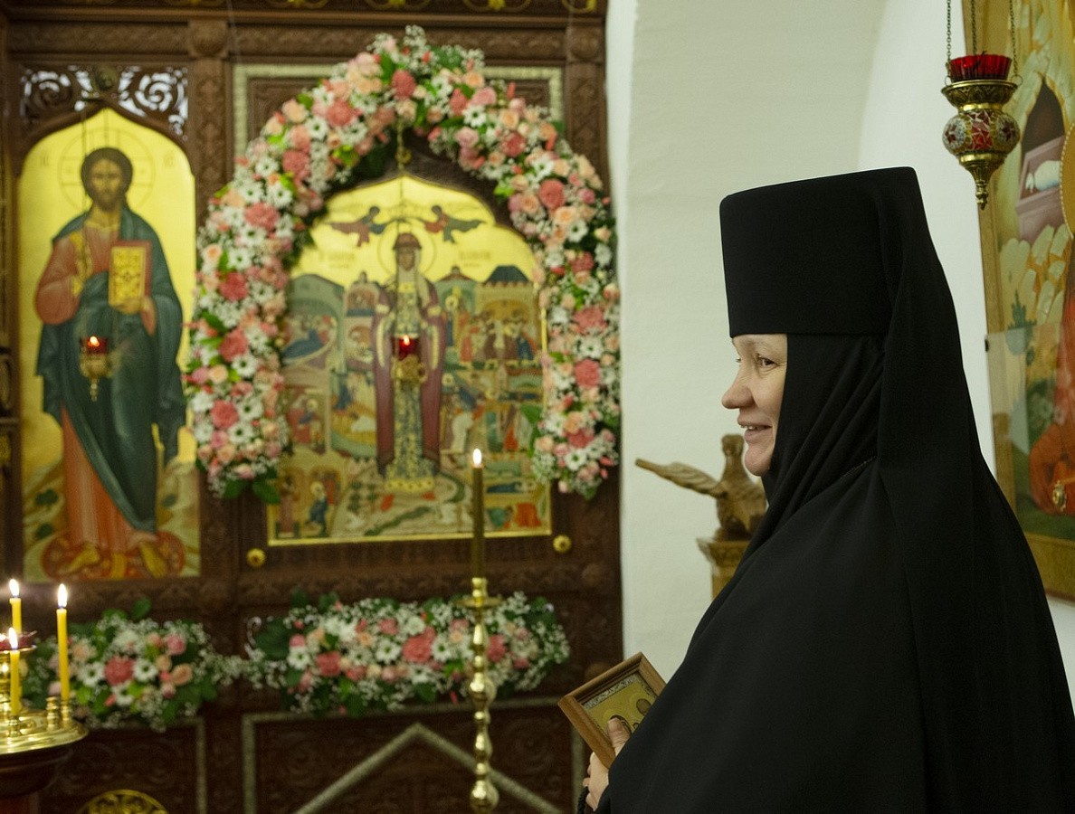 Завершился престольный праздник чином о панагии и трапезой с поздравлениями в адрес заместителя председателя Синодального отдела по монастырям и монашеству игумении Иулиании, молитвенно отметившей 3 января малый день Ангела.