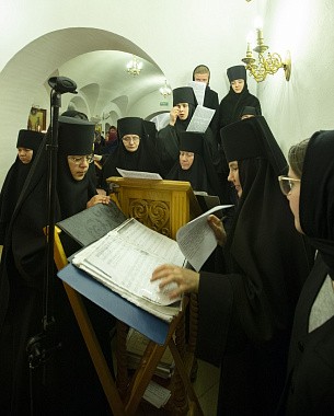 Придел собора в обычные дни закрыт для прихожан: там молятся недугующие монахини и те из насельниц, кто по благословению игумении хотел бы особо сосредоточенно помолиться, не отвлекаясь на многолюдное собрание паломников обители.