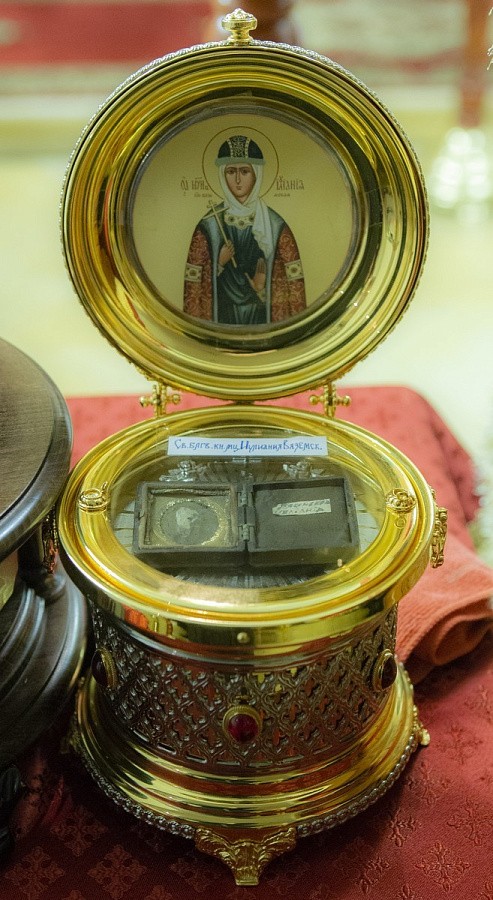 Для поклонения верующим был вынесен ковчег с частицей мощей святой мученицы благоверной княгини Иулиании Вяземской.