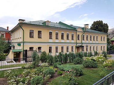 Церковь Сошествия Святого Духа была построена в 1849-1850 гг. в западной части Зачатьевского монастыря по инициативе игумении Варвары Головиной и проекту архитектора М.Быковского. Спустя некоторое время, к храму был пристроен каменный объем для детского приюта и церковно-приходской школы для девочек. В 1933 г. были разобраны барабан и купол храма, а часть первоначальных оконных проемов была заложена, вместо них пробиты новые. В начале 2000-х гг. церкви был возвращен исторический облик.
