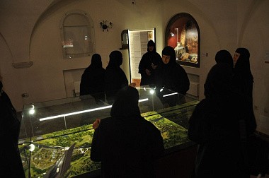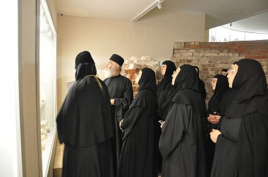 Настоятельница Зачатьевской обители игумения Иулиания (Каледа) с сестрами встретила гостей и провела подробную ознакомительную экскурсию по святыням Зачатьевского монастыря и церковно-историческому музею обители.