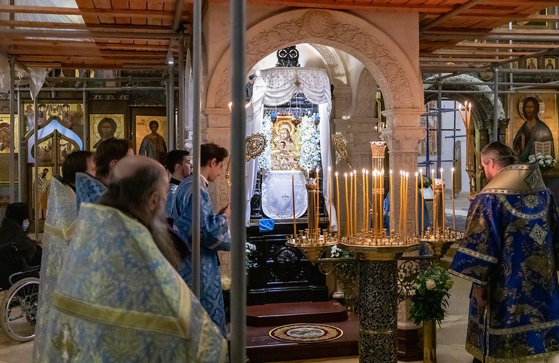 По отпусте Литургии перед чудотворным монастырским образом было совершено славление.